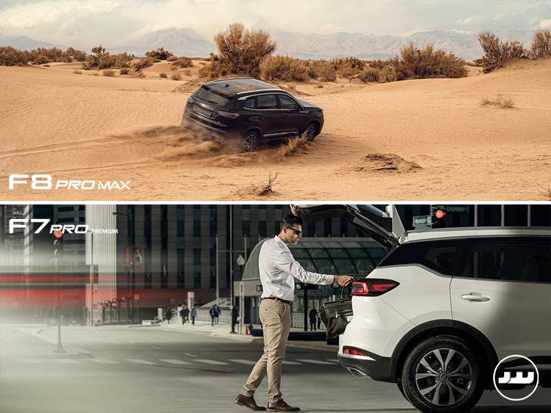 در طرف دیگر، F8 Pro Max بازی را عوض میکند. ابعاد بزرگتر بدنه (بیش از ۲۰ سانتیمتر کشیدهتر)، به آن وقار و ابهت یک شاسیبلند تمامعیار را بخشیده است. این خودرو تلاش نمیکند "تند و تیز" به نظر برسد، بلکه میخواهد "قدرتمند و لوکس" دیده شود. وجود چهار خروجی اگزوز واقعی در عقب و رینگهای بزرگتر، به بیننده یادآوری میکند که با پرچمدار قدرتمند این خانواده روبرو است.