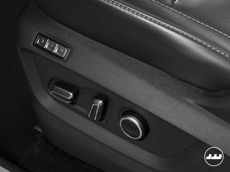 - صندلیهای ارگونومیک با پوشش چرم مصنوعی: برخوردار از تنظیمات برقی در ۶ جهت و حافظه یکپارچه با آینههای جانبی